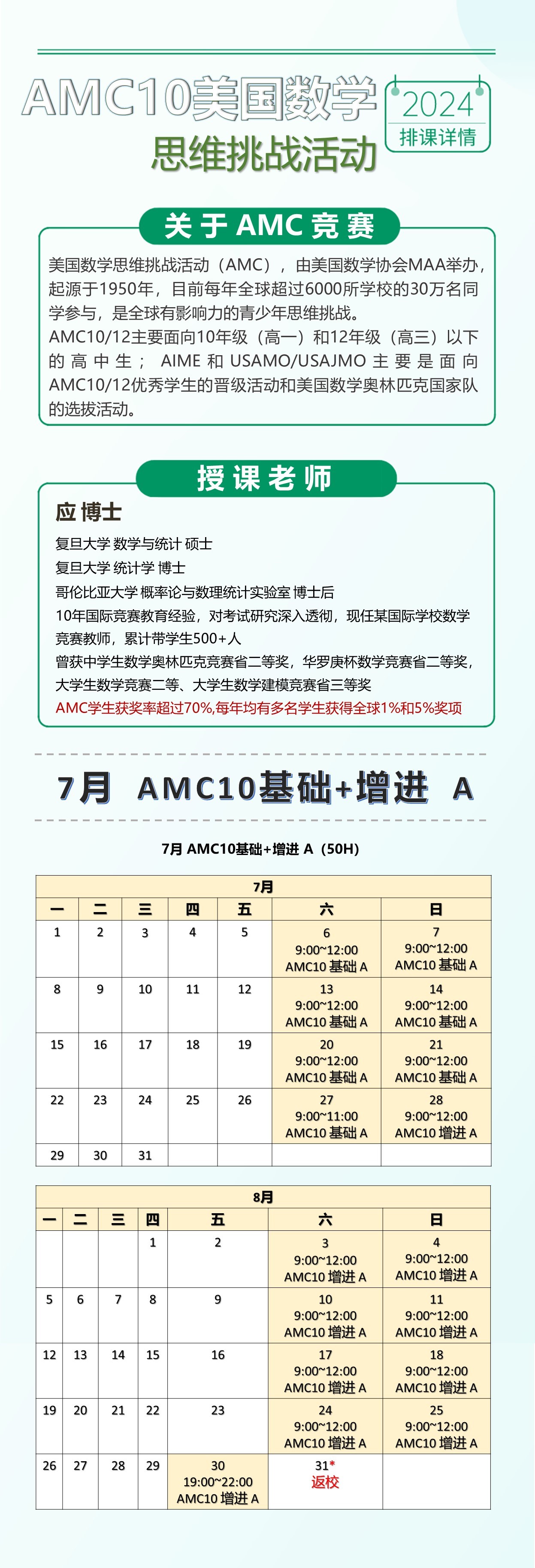 • AMC 10:10 年级且 17.5 岁以下年级 / 年龄学生