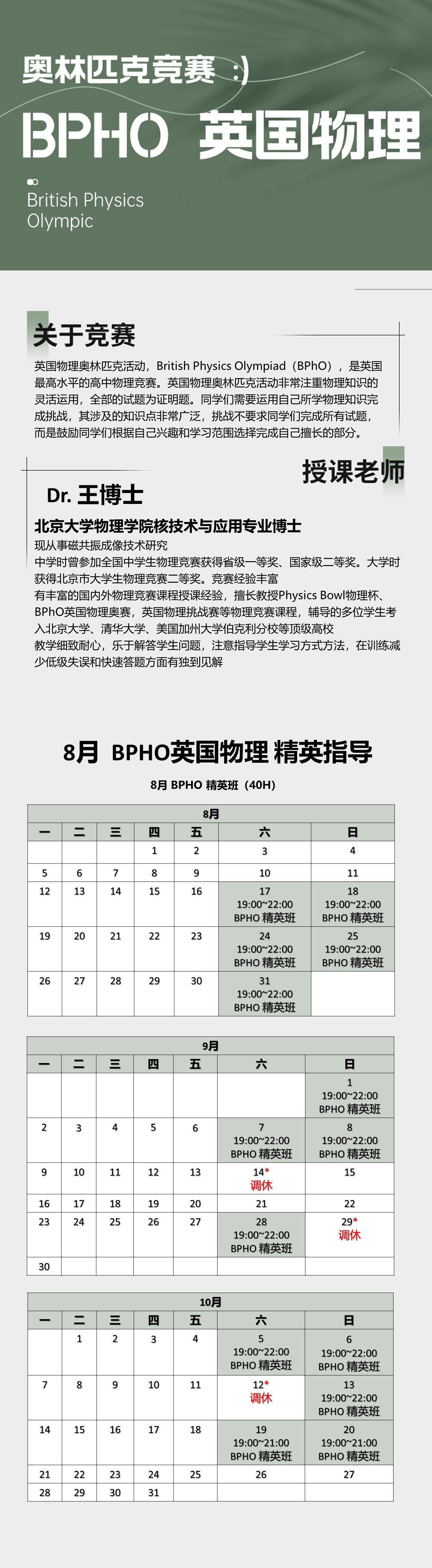 英国物理奥林匹克活动,British Physics Olympiad(BPhO),是英国最高水平的高中物理竞赛。英国物理奥林匹克活动非常注重物理知识的灵活运用,全部的试题为证明题。同学们需要运用自己所学物理知识完成挑战,其涉及的知识点非常广泛,挑战不要求同学们完成所有试题,而是鼓励同学们根据自己兴趣和学习范围选择完成自己擅长的部分。