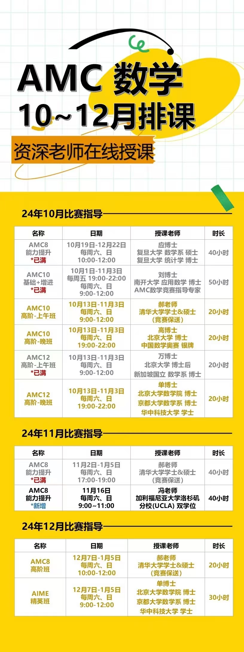 AMC10/12美国数学竞赛:A卷11月7日、B卷11月13日