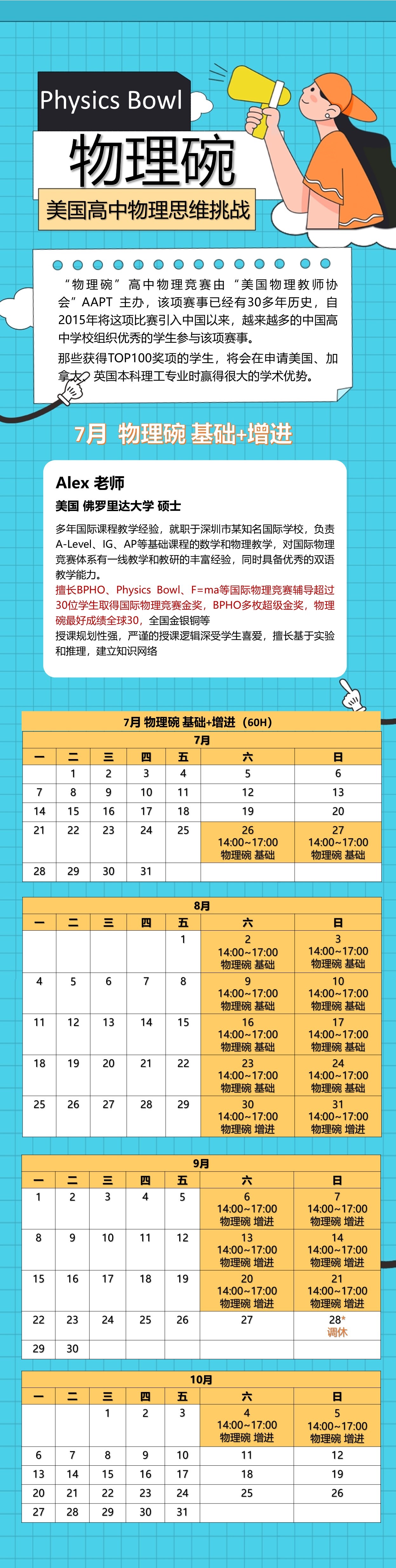 “物理碗”高中物理竞赛由“美国物理教师协会”AAPT主办,该项赛事已经有30多年历史,自2015年将这项比赛引入中国以来,越来越多的中国高中学校组织优秀的学生参与该项赛事。那些获得TOP100奖项的学生,将会在申请美国、加拿大英国本科理工专业时赢得很大的学术优势。