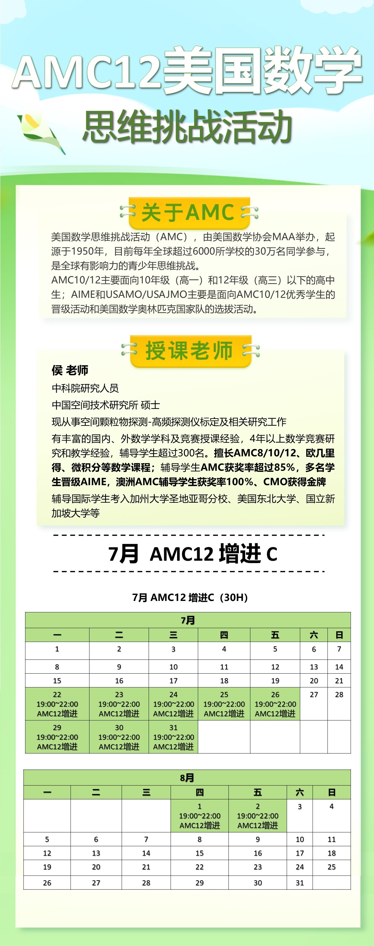 美国数学思维挑战活动(AMC),由美国数学协会MAA举办,起源于1950年,目前每年全球超过6000所学校的30万名同学参与,是全球有影响力的青少年思维挑战。AMC10/12主要面向10年级(高一)和12年级(高三)以下的高中生;AIME和USAMO/USAJMO主要是面向AMC10/12优秀学生的晋级活动和美国数学奥林匹克国家队的选拔活动。