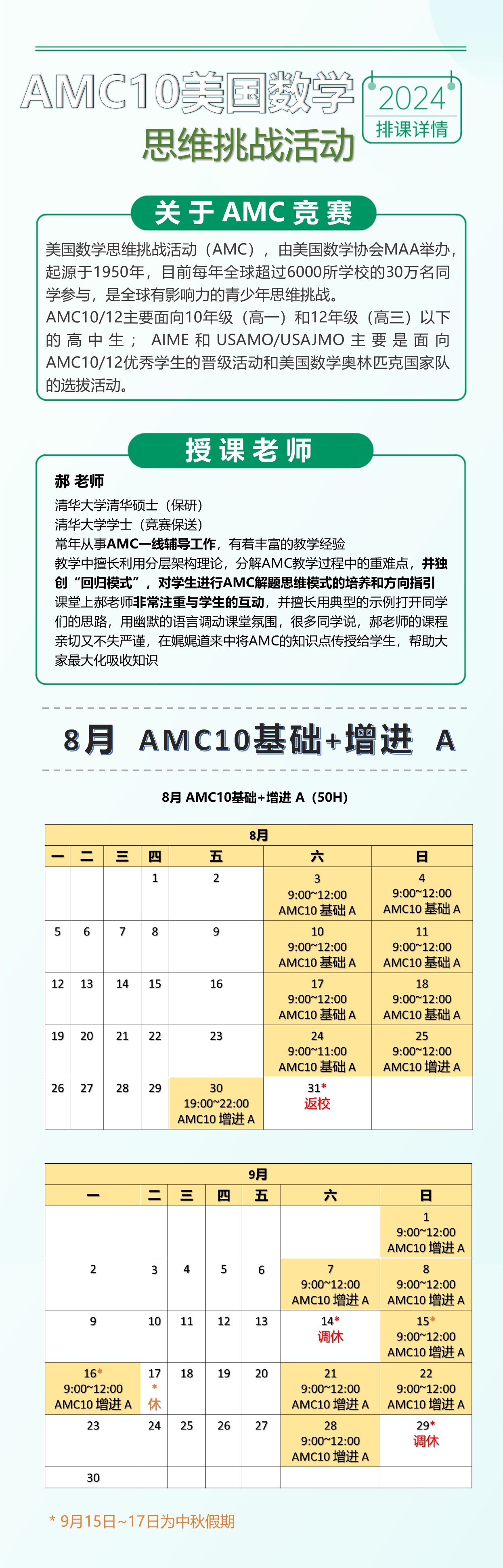 美国数学思维挑战活动(AMC),由美国数学协会MAA举办,起源于1950年,目前每年全球超过6000所学校的30万名同学参与,是全球有影响力的青少年思维挑战。AMC10/12主要面向10年级(高一)和12年级(高三)以下的高中生;AIME和USAMO/USAJMO主要是面向AMC10/12优秀学生的晋级活动和美国数学奥林匹克国家队的选拔活动。