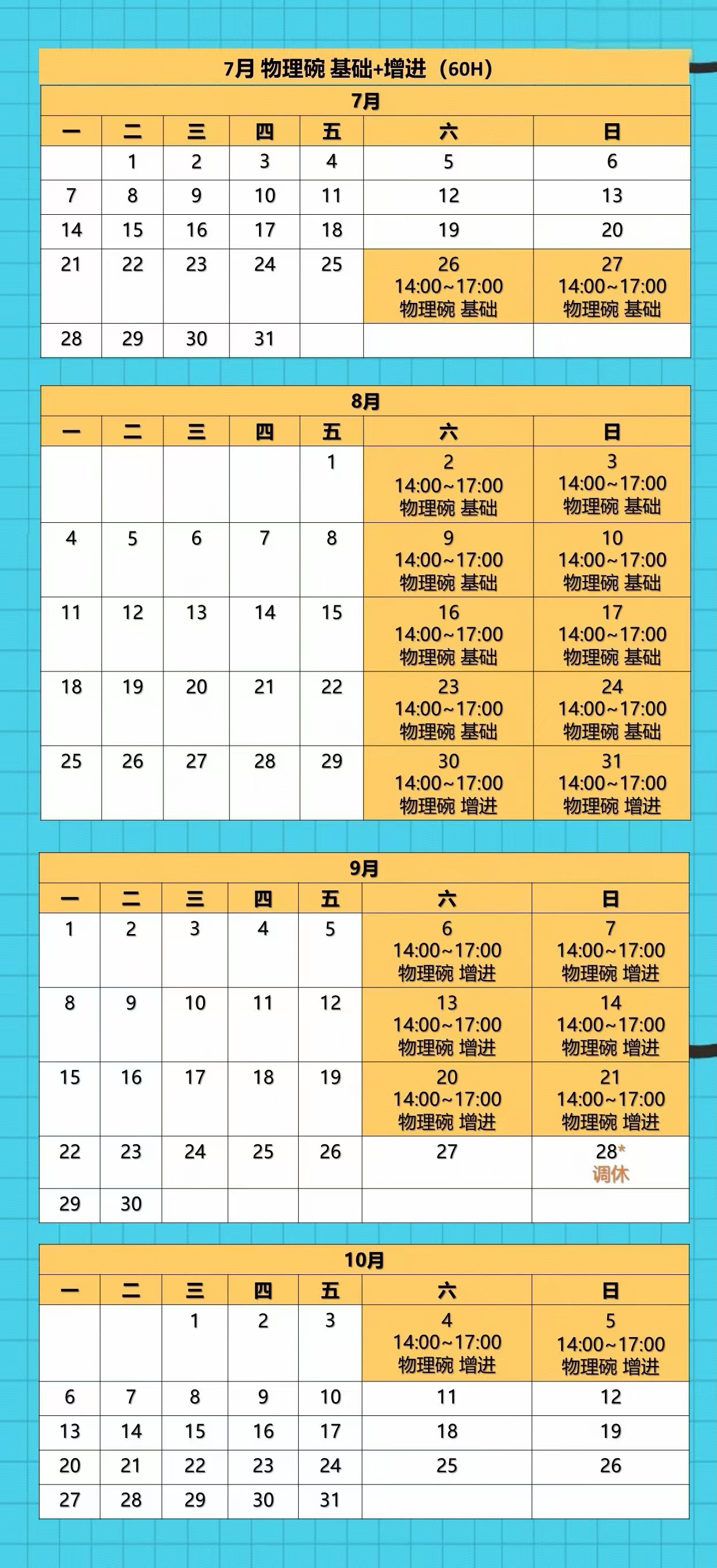 📅 7-8月周末基础课程:14:00-1700,打好基础+进阶强化。