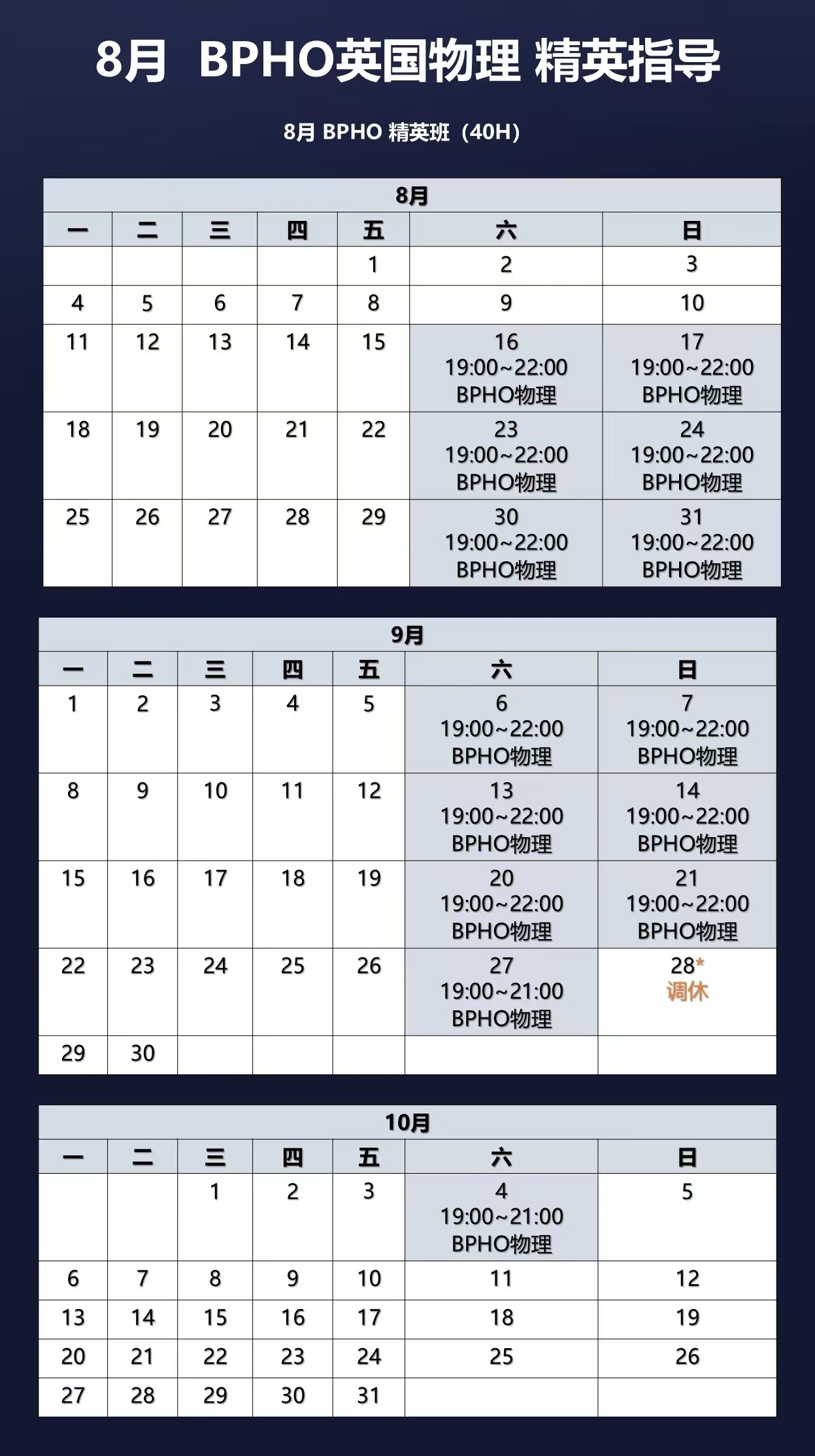 9月27日(周日) :19:00-21:00 *注:9月28日课程调休