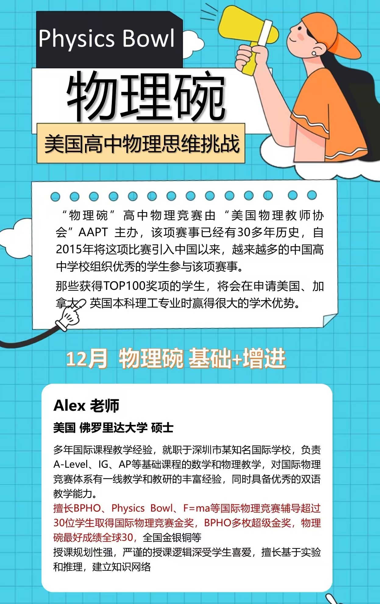 机会总是青睐有准备的头脑。无论是为了挑战自我、深化物理理解,还是为了在未来的留学申请中脱颖而出,参加物理碗竞赛并接受专业的指导都是一项极具价值的投资。