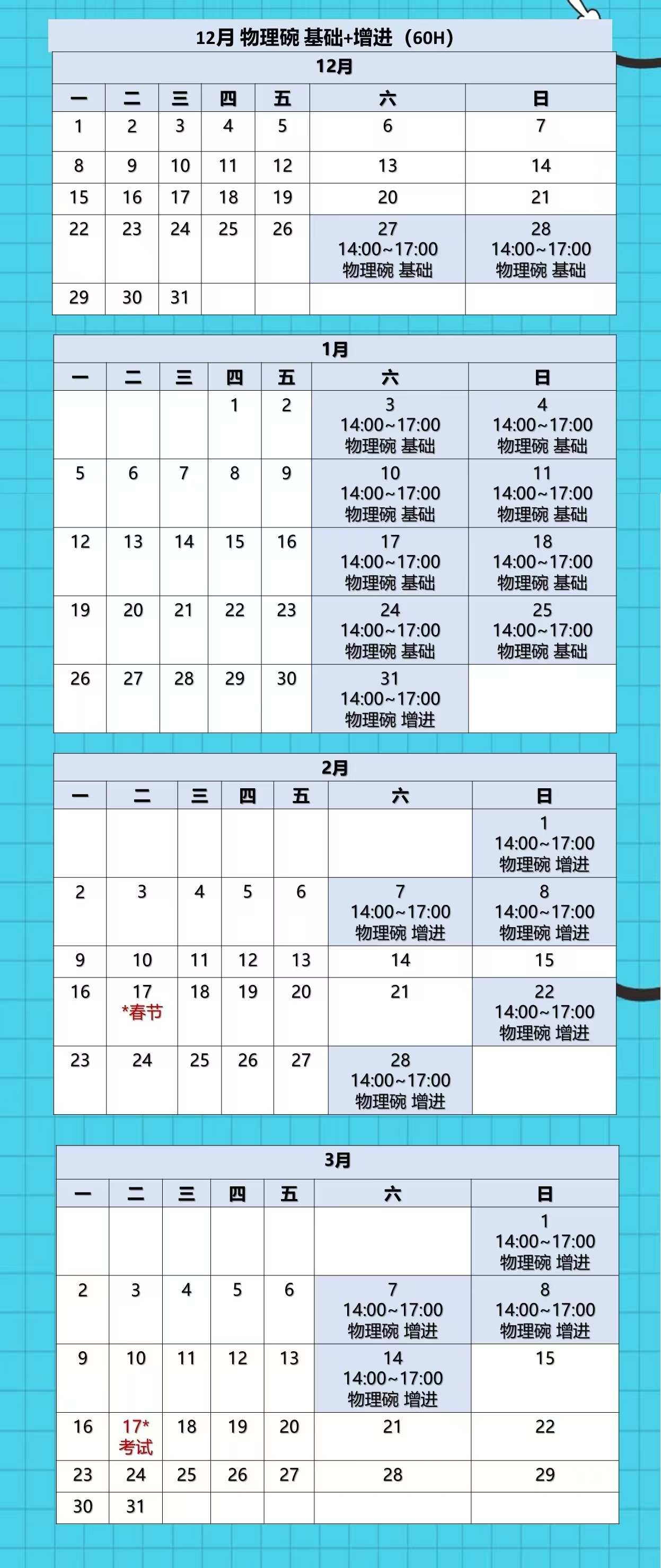 为了帮助有志学子系统备考,我们精心设计了为期四个月的“基础+增进”全程系统培训课程,总课时达60小时。本课程由浅入深,科学规划,旨在帮助学员夯实基础,突破难点,以最佳状态迎接每年3月的全球统考。