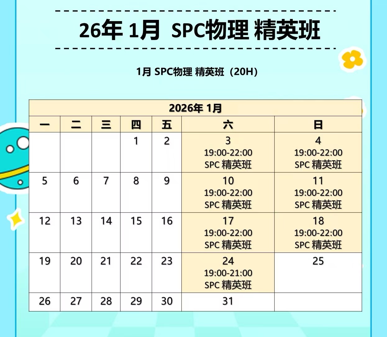 2026年1月SPC物理精英班现已开放报名,限额招生,保障教学质量。对于有志于参加国际物理竞赛、提升物理学科能力的学生来说,这是一个难得的机会。
