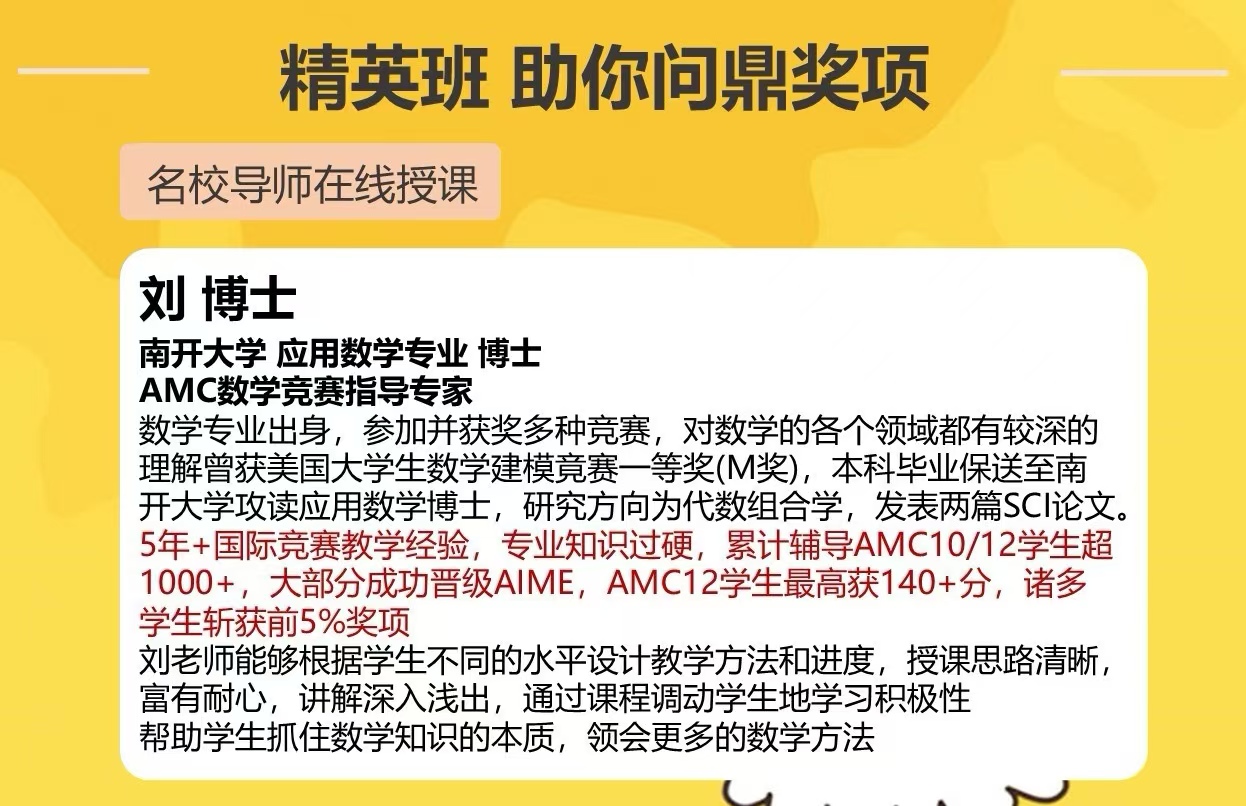 为培养具有国际视野的数学精英人才,现正式启动欧几里得数学竞赛精英班招生计划。本课程旨在通过系统化、高强度的专业训练,帮助有志于在国际数学竞赛中斩获佳绩的学生深度备赛,全面提升数学思维能力与解题技巧,为成功冲击奖项奠定坚实基础。