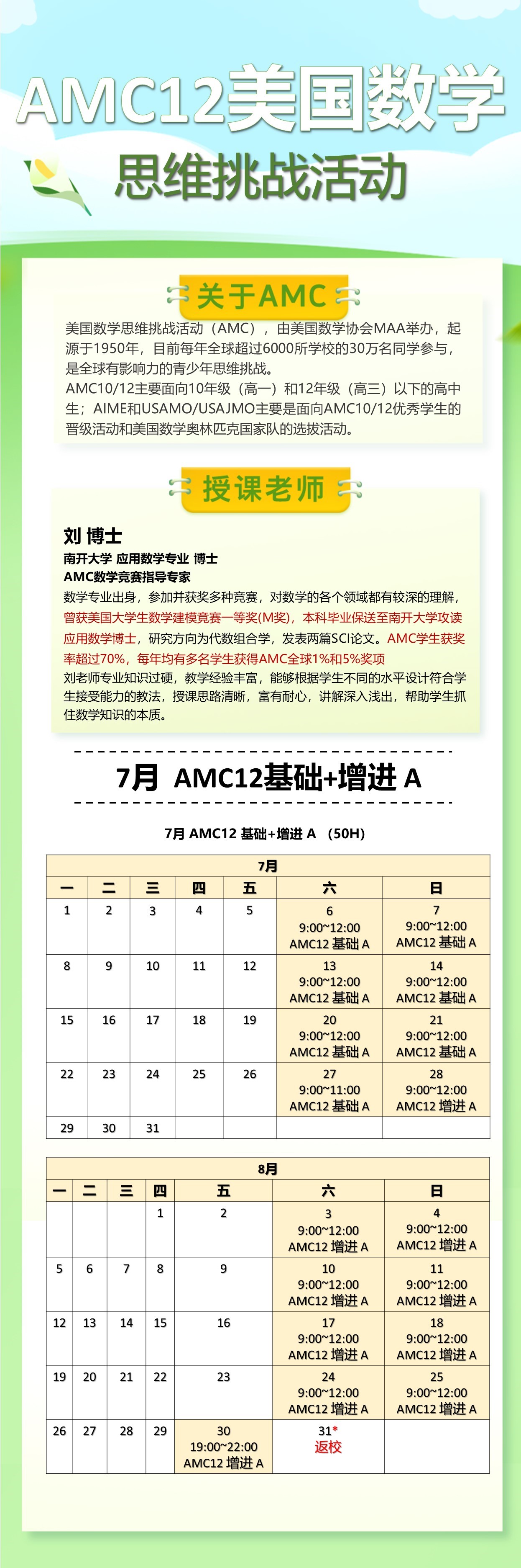 了解更多关于:7月AMC12基础+增进A(50H)信息,欢迎拨打免费报名咨询电话:【400 102 1394】